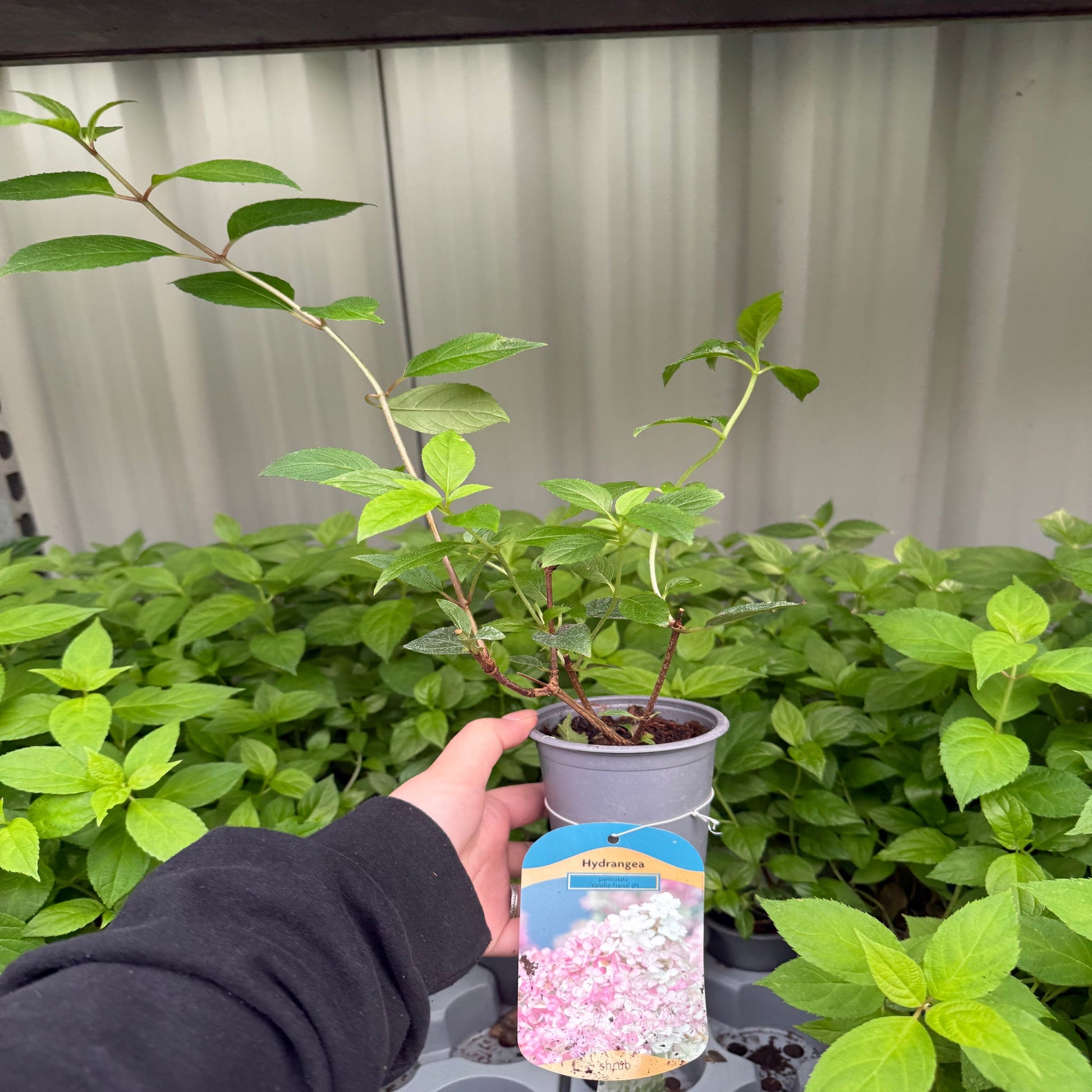 Hydrangea paniculata 'Vanille Fraise' is a stunning deciduous shrub that adds a touch of elegance to outdoor spaces. Renowned for its cone-shaped flower clusters, this variety starts with creamy white blooms that gradually transform into exquisite shades of vanilla and strawberry pink as the season progresses. The name 'Vanille Fraise' translates to "vanilla strawberry," capturing the delightful colour evolution of its blossoms.